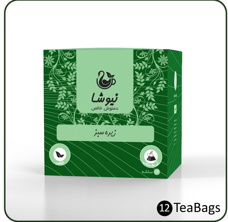 زیره سبز نیوشا یک ساشه داخل آب جوش میگذاریم ده دقیقه دم بکشد روزانه یک ساشه در جای خشک نگهداری شود