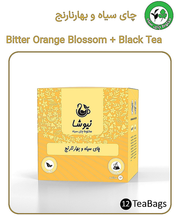 یک عدد تیبگ چای سیاه و بهار نارنج نیوشا را در یک لیوان آب جوش (حدود ۲۰۰ میلیلیتر) قرار دهید.